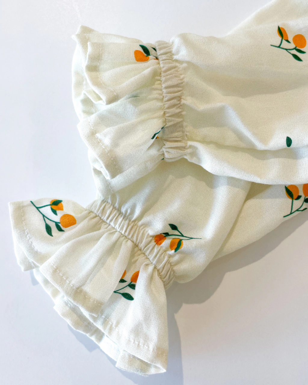 A Camisa Laranjas é confeccionada em tecido tricoline 100% algodão, garantindo um toque suave e agradável na pele. Com uma estampa digital laranjinha exclusiva da Mer Bleu, esta peça se destaca pelo seu design vibrante e contemporâneo.