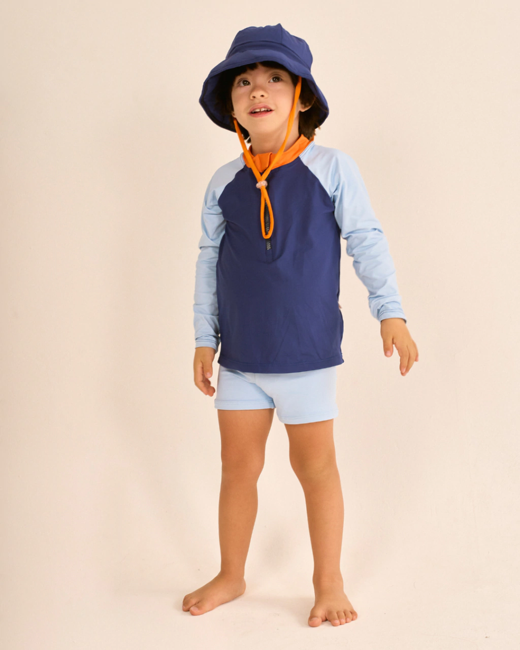 A Camisa UV Felipe Navy é perfeita para os pequenos que precisam de proteção extra e estilo no sol.
