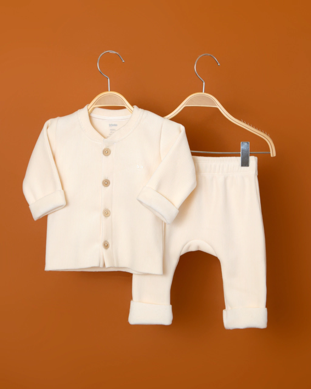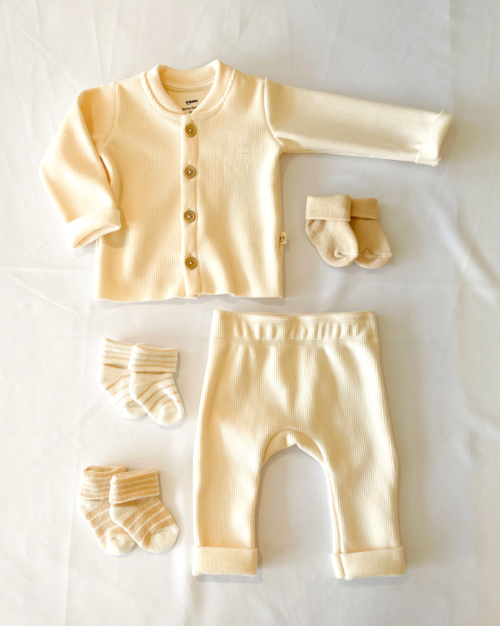 O tom de baunilha da peça é perfeito para meninos e meninas. Seja para um passeio no parque ou um dia de preguiça em casa, esse conjunto é puro amor em forma de roupa.