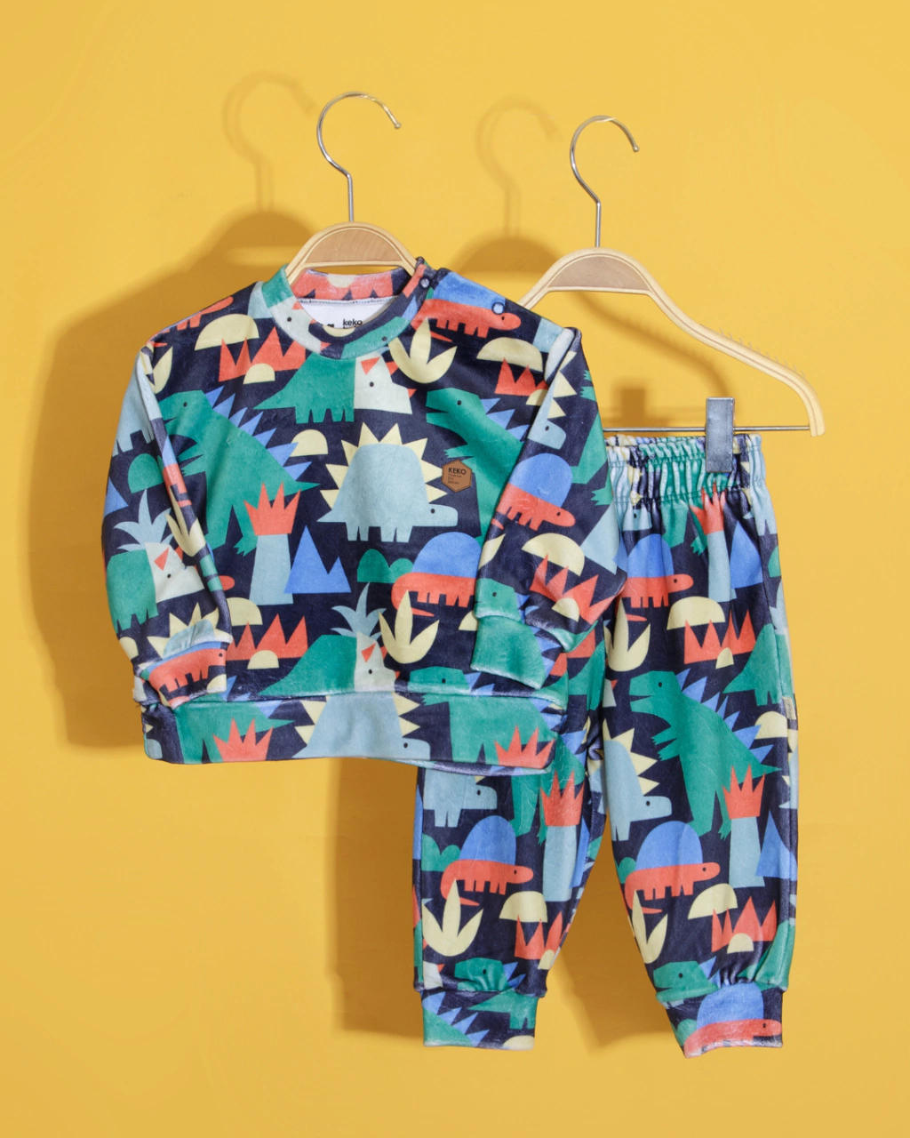 O Conjunto Infantil em plush com estampa full print de dinossauros é perfeito para aquecer os pequenos nos dias frios, sem abrir mão do estilo. Com toque aveludado e macio, o tecido plush proporciona sensação de aconchego o dia todo.