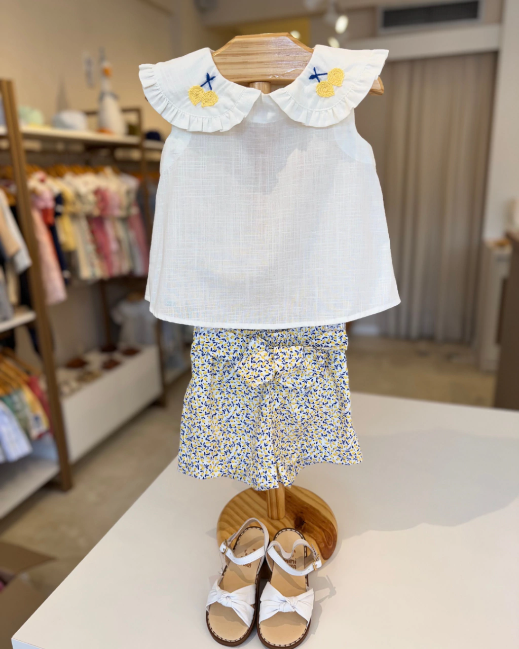 O shortinho estampado com motivo de limão complementa a peça com leveza e frescor, enquanto a amarração na cintura valoriza a silhueta, proporcionando conforto e estilo em perfeita harmonia. Ideal para ocasiões especiais ou para um dia cheio de charme, o conjunto celebra a tradição do bordado manual com um design elegante e moderno.