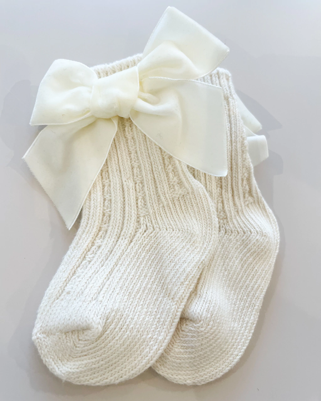 Descubra a delicadeza e o charme da Meia em Tricot com Laço de Veludo, a escolha perfeita para complementar o look das pequenas com um toque de sofisticação e conforto.