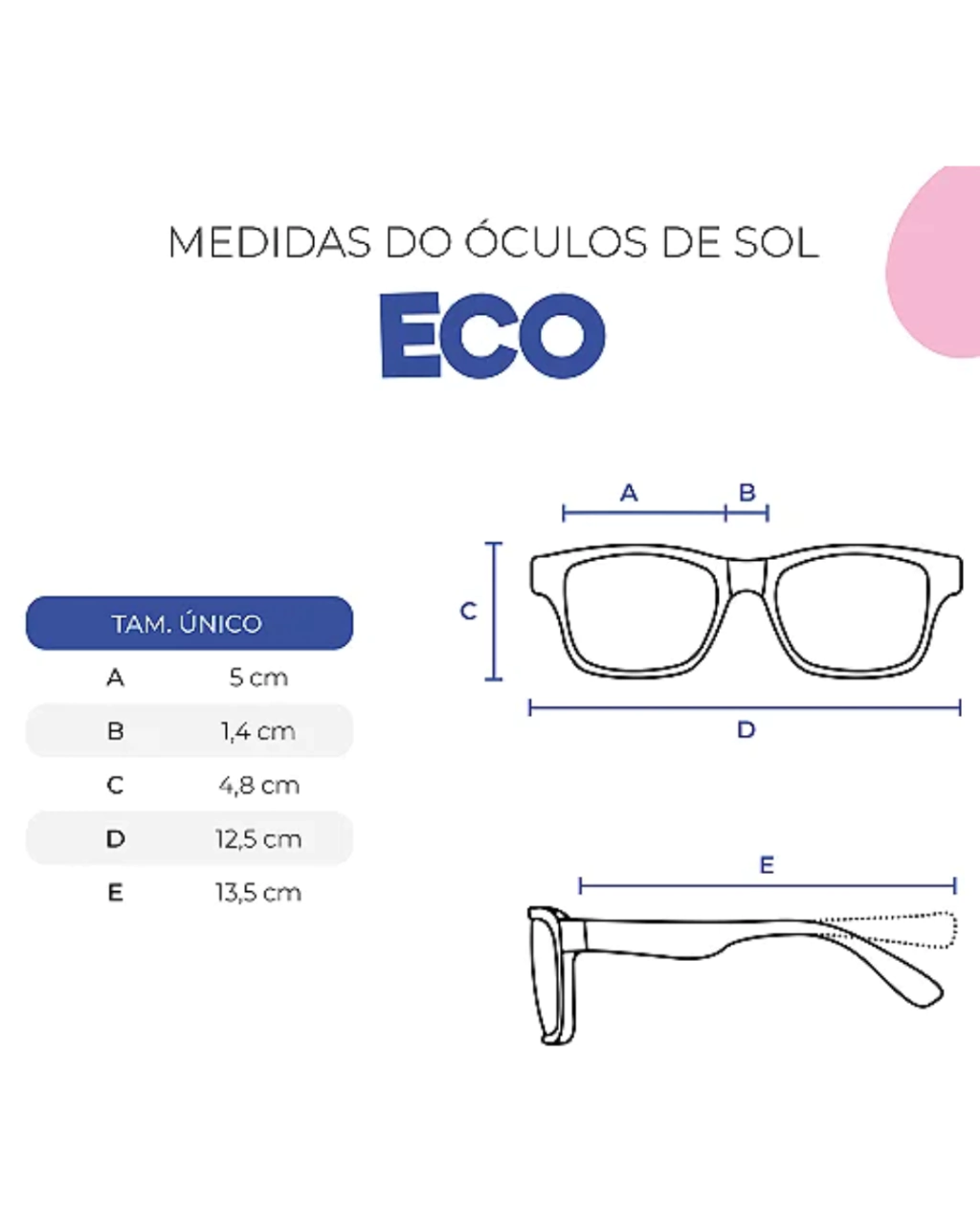 Os Óculos de Sol Eco são a nossa versão sustentável, uma escolha consciente para papais e mamães antenados. Eles têm suas armações fabricadas com material reciclado e foram desenvolvidos especialmente para crianças, com a segurança e a proteção total contra raios UVA e UVB.