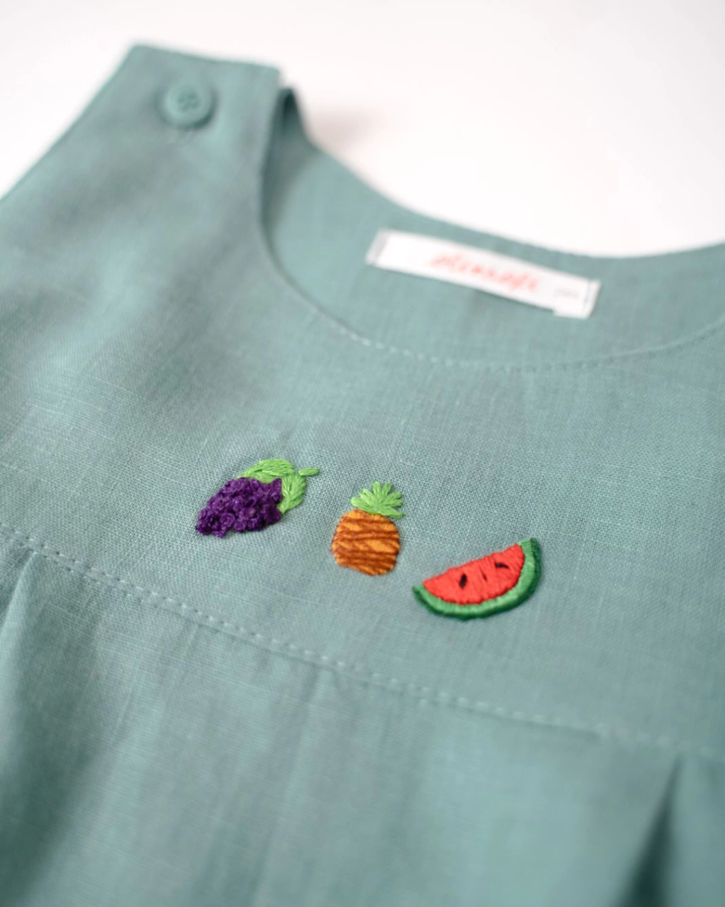 Um clássico repaginado com muito charme! Confeccionado em 100% linho, esse romper garante conforto e frescor para os pequenos nos dias mais quentes. O detalhe especial fica por conta dos bordados feitos à mão, trazendo frutinhas coloridas que tornam a peça única e cheia de graça.
