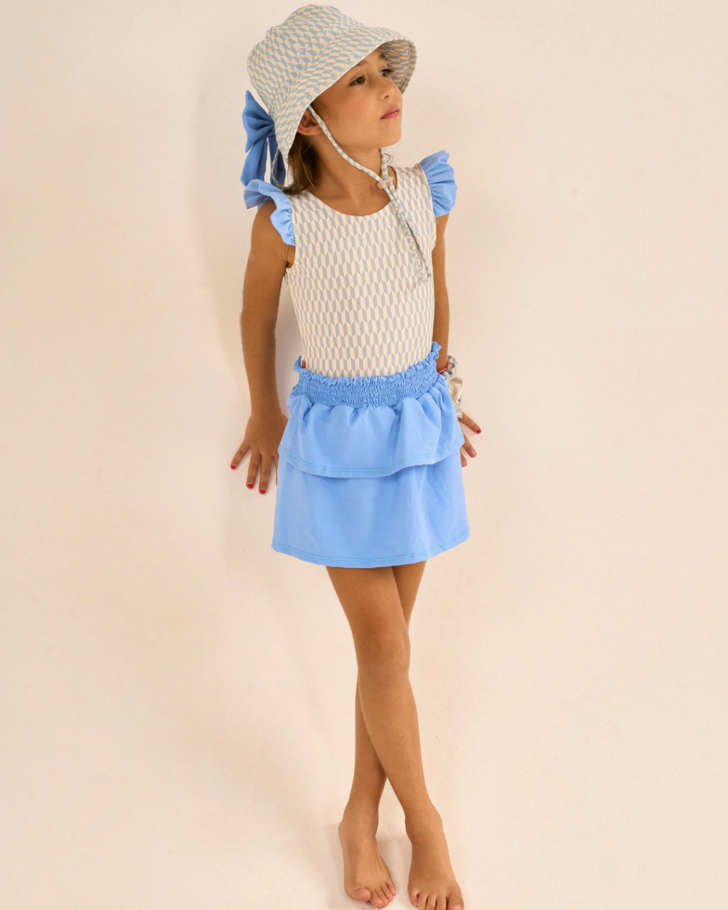 Confeccionada em tecido liso Fly, ela é perfeita para servir de saída de praia, com babados duplos e cós de elástico, garantindo conforto e praticidade para os pequenos.