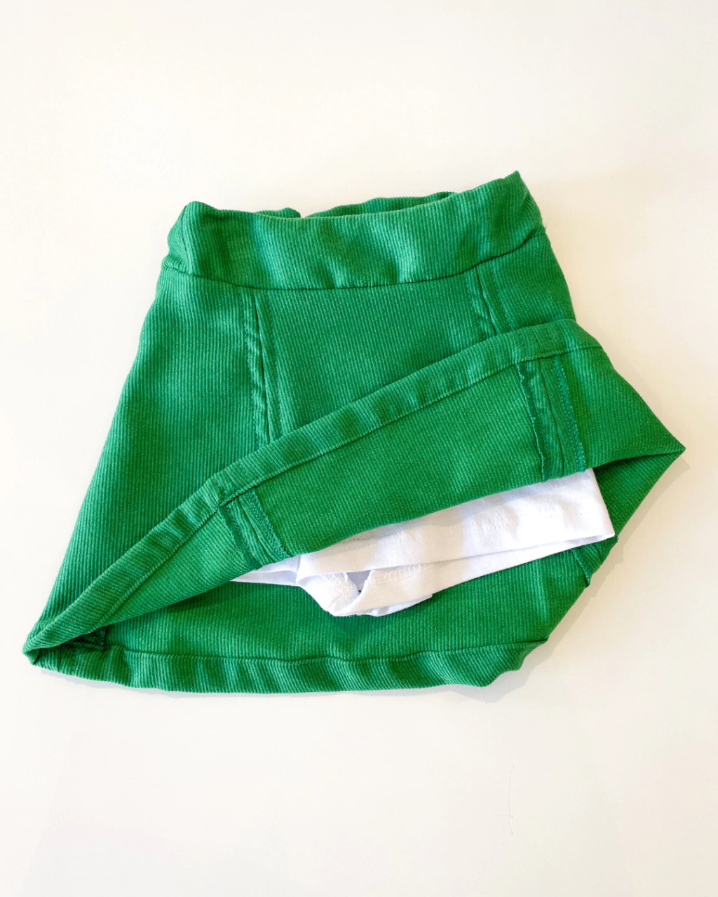 A Saia Verde é a escolha ideal para quem busca conforto e estilo em uma única peça. Confeccionada em tecido cotelê verde, esta saia possui forro de shorts 100% algodão, garantindo um toque suave e agradável na pele e conforto para brincar.