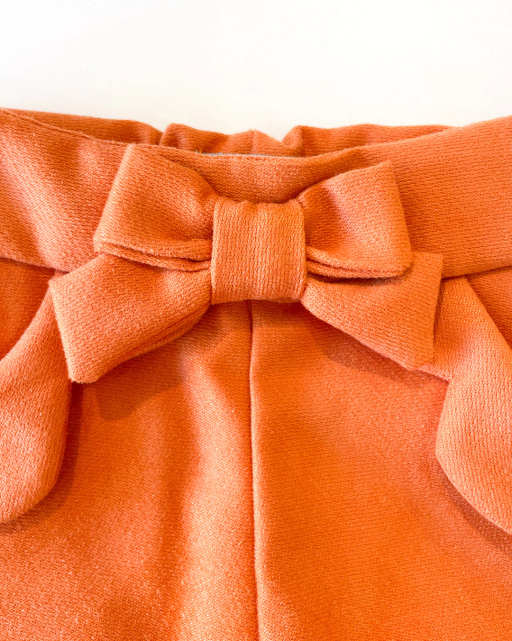 O Short Laço Laranja é a peça perfeita para as pequenas estilosas! Confeccionado em tecido de alfaiataria laranja, com 90% poliéster e 10% outras fibras, ele oferece um caimento impecável e uma durabilidade excepcional.