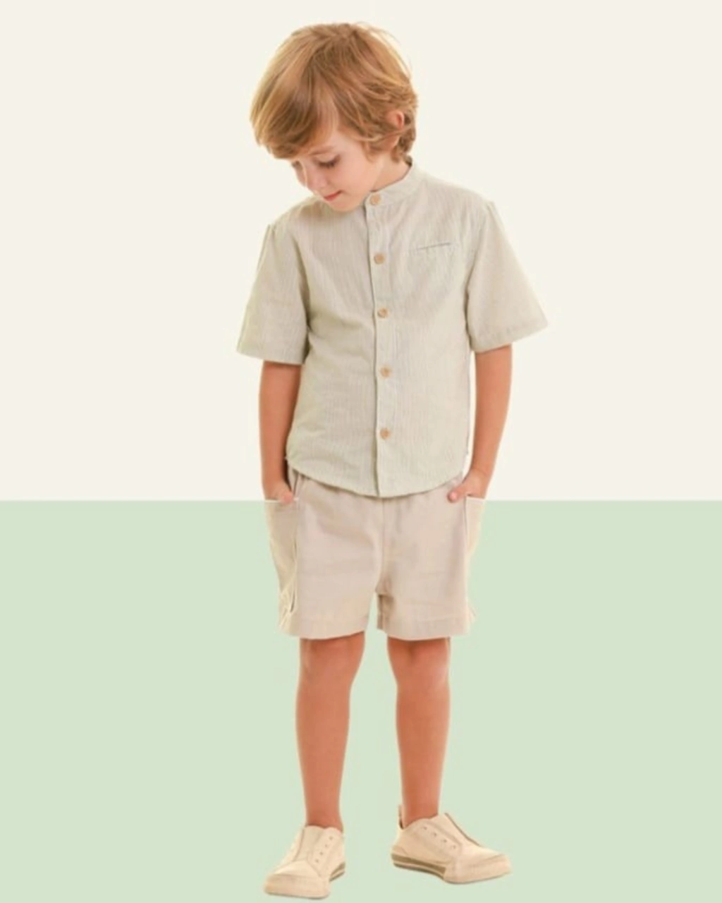Clássico e versátil, esse short infantil é perfeito para compor produções elegantes e confortáveis. Confeccionado em tecido leve e estruturado, traz modelagem reta, bolsos laterais funcionais e elático na cintura, que facilita o vestir.